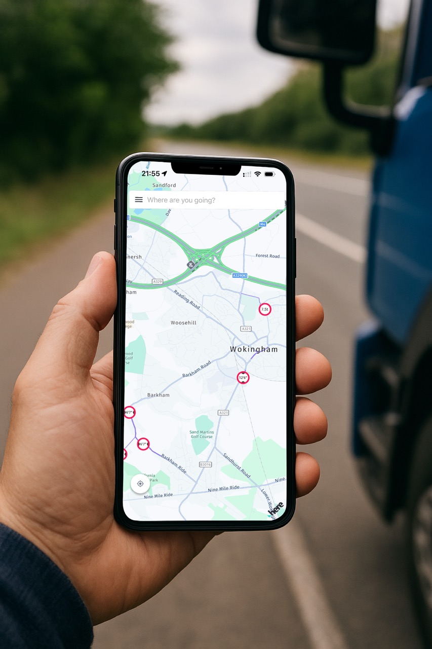 The Lorry Route app generates a compliant route from the driver’s current location to their selected destination.